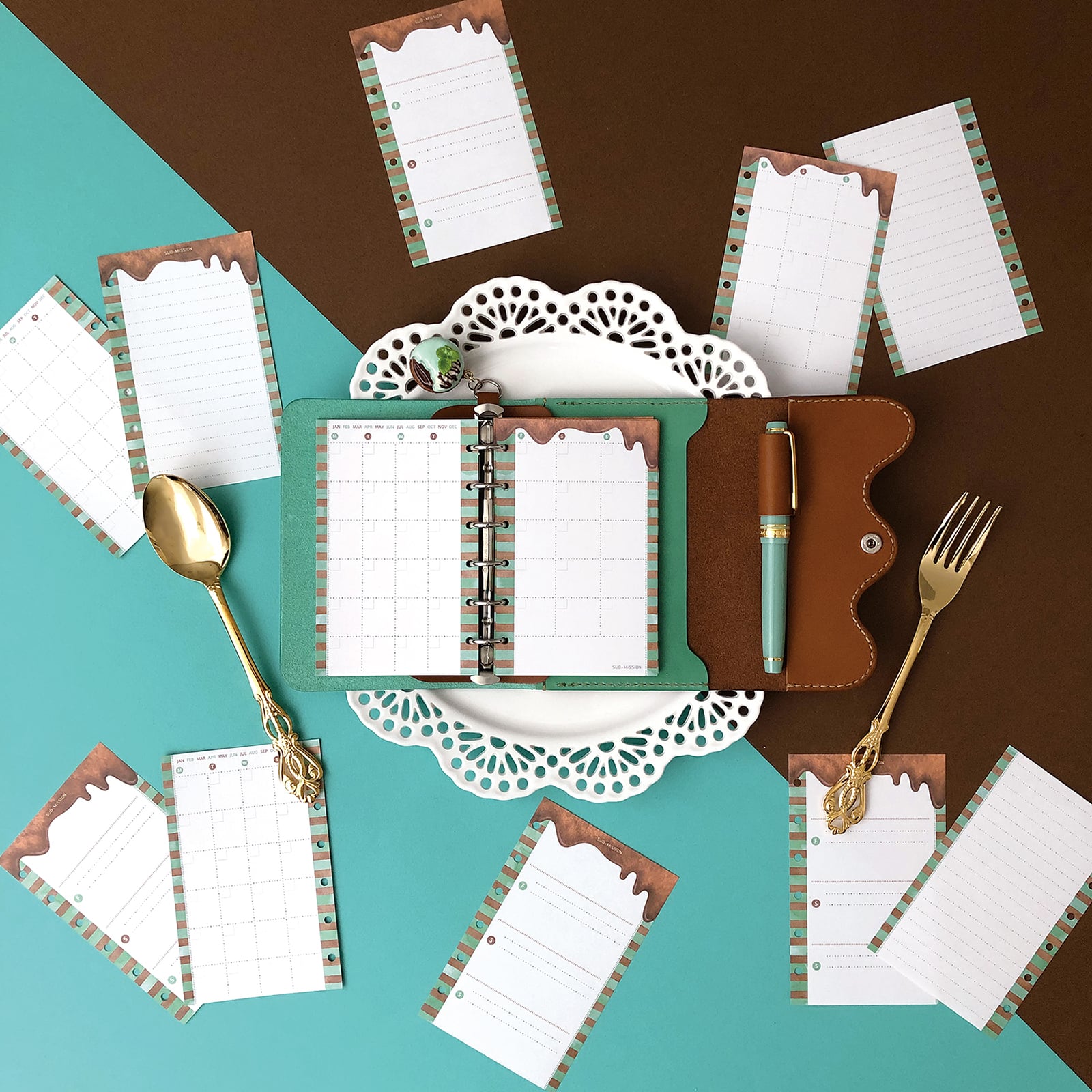 抽選販売【ミニ6】チョコミント手帳 (パトロネージュ・セット / お一人様1点限り)/ M6 システム手帳 + リフィル3冊 +パトロネージュ・チャーム << SUB×MISSION >>